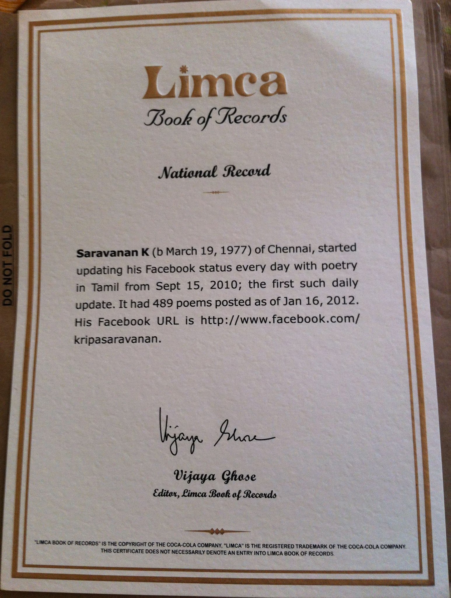 Over the years, Kripa Saravanan has written extensively on a wide range of topics, including history, philosophy, and literature. Kripa Saravanan's articles have been published in leading online magazines and he even got placed in the "Limca Book of Records" book for his literary contribution.